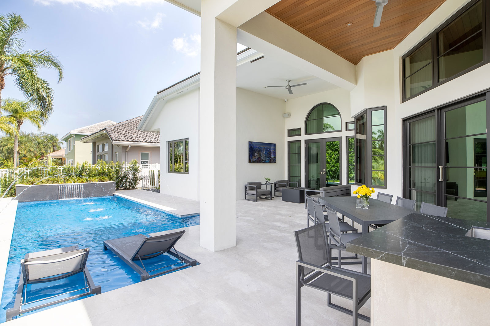 Outfitted with an audiophile sound system in every room and outdoors, the latest in TV technology in every room, tons of lighting presets for every occasion, this home is also an entertainment heaven when it’s time to party.